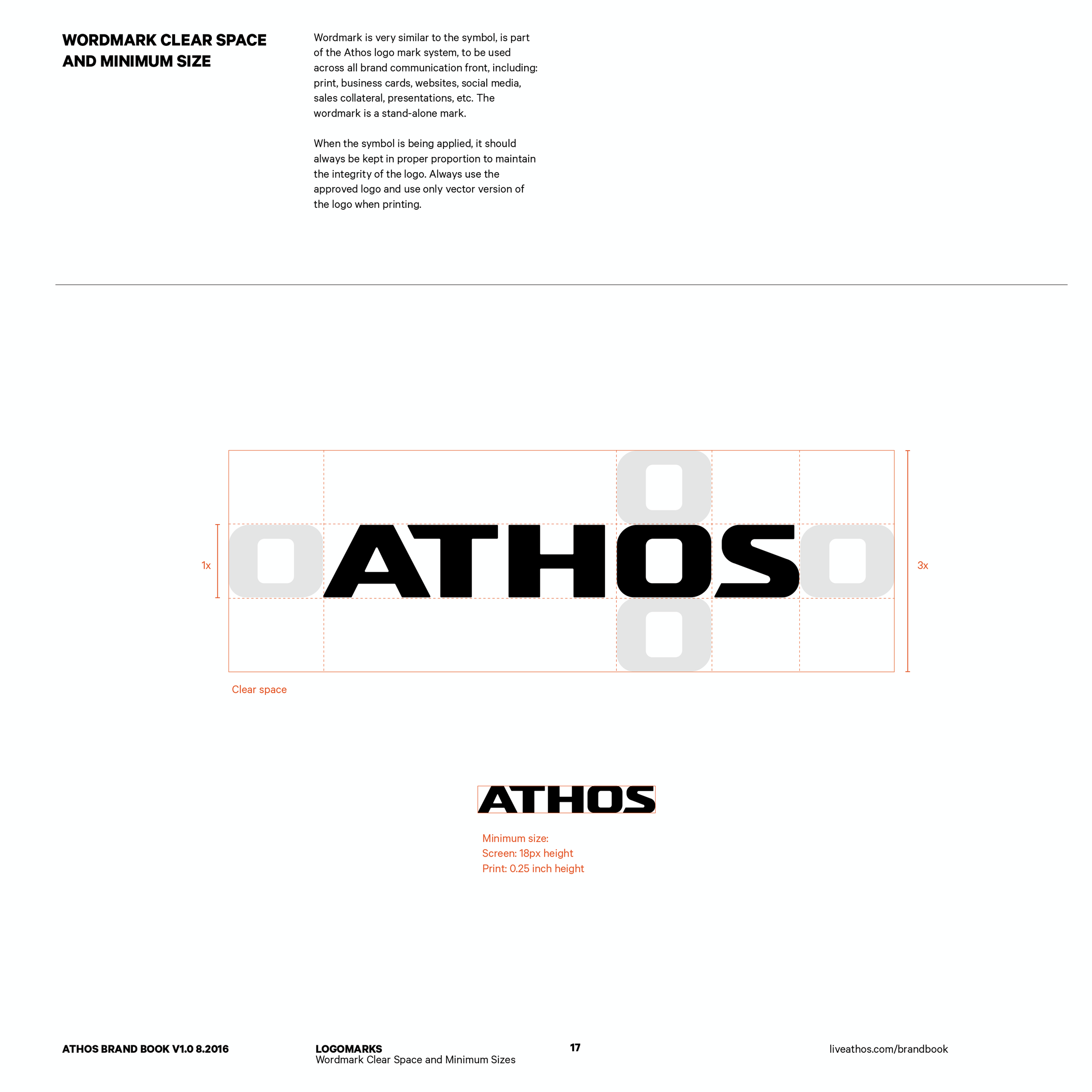 The Athos brand identity sought to be bold, vibrant, energetic, aggressive and polished. Its target audience was elite athletes, DoD soldiers, and fitness enthusiast. Brands like Gatorade and Nike were used as inspiration to develop the Athos brand identity.